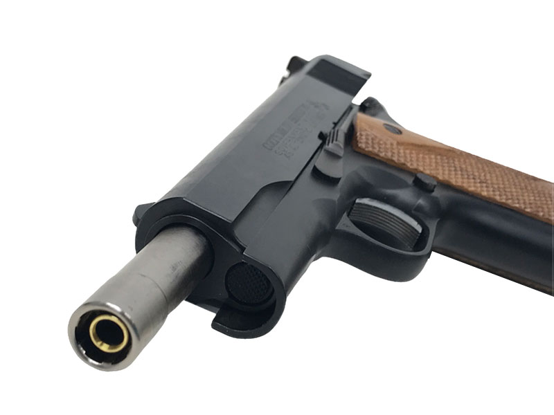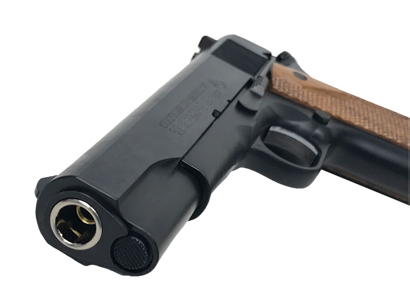 鉄のかすれたような風合いを再現したカーボンブラックによるズシリとした重量感、再現性の高いディティール、刻印、エッジの立ち具合も鋭い1丁。 初速も比較的高めで実写性能にも優れたモデル。