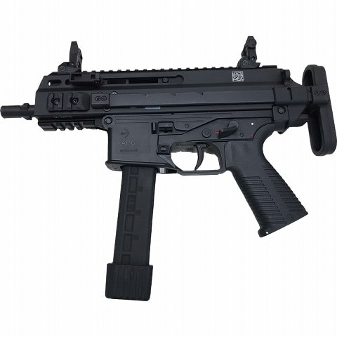 スイスの銃器メーカーB&T社の9x19mm弾使用サブマシンガン APC9の最短モデルを再現したガスブローバックガンです。