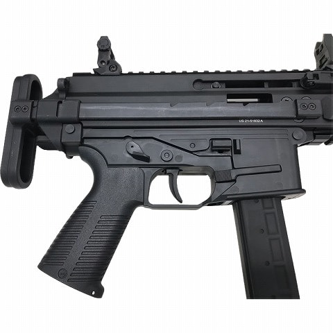 MP9との違いは、ロッキング機構の無いストレートブローバック方式、AR-15(M4カービン)をベースにした操作系などとなります。
