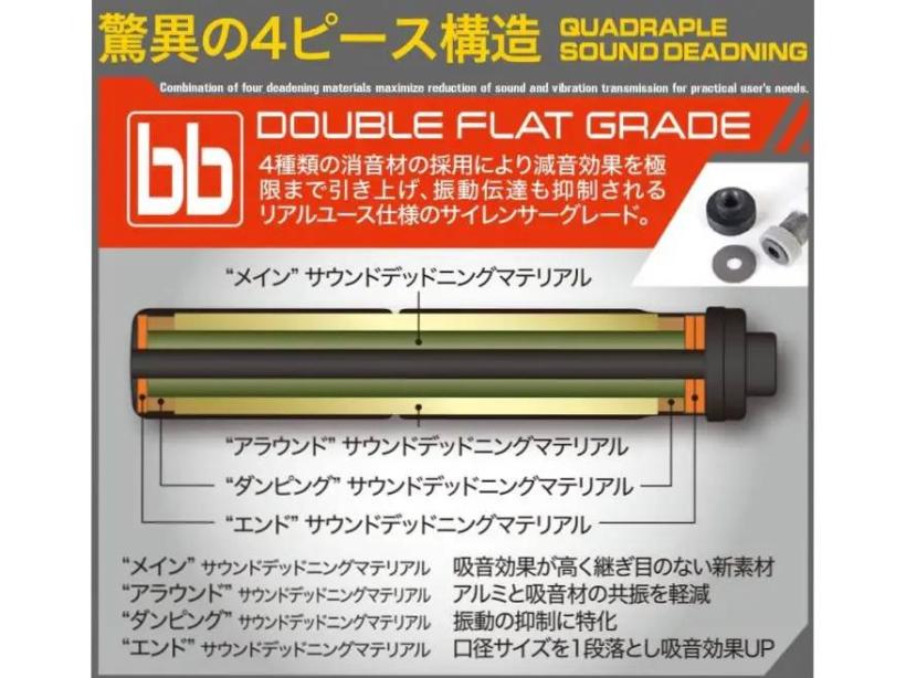 「4種類の消音材の採用」により減音効果を極限まで引き上げ、振動伝達も抑制されるリアルユース仕様のサイレンサーグレードです。