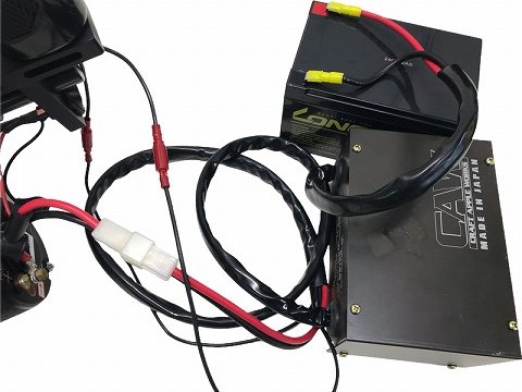 男なら一度は手にしてみたい憧れのミニガン。バイクや車に使われている12Vのバッテリーにつなぎ