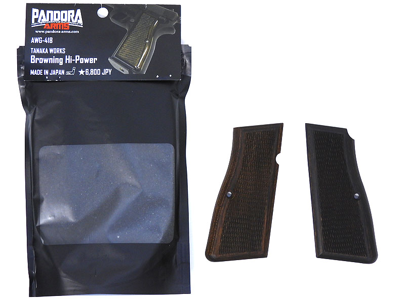 [Pandora Arms] タナカワークス社製 ブローニング・ハイパワー対応 木製グリップ チェッカー/ダークブラウン 樺 AWG-1418 (中古)の販売ページ|エアガン.jp