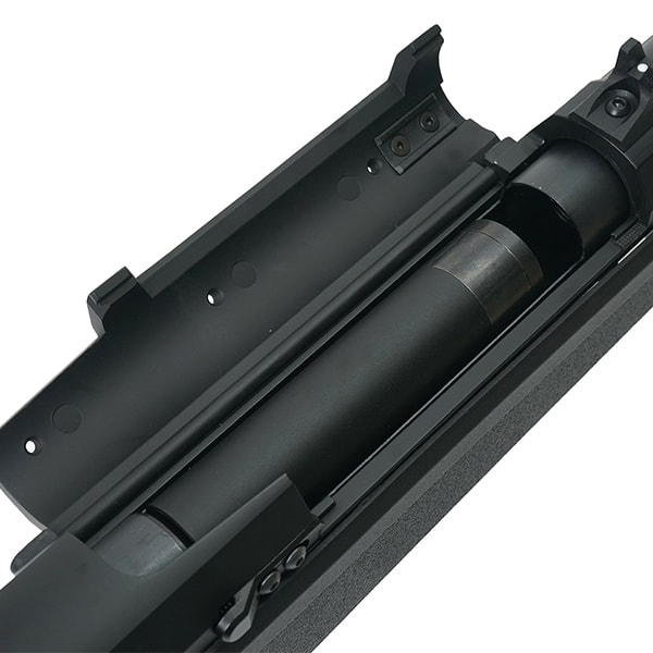 ガスタンクは、ボルト内部に備わっていますが、ボルト部分にアクセスすることで簡単にタンク交換が行える着脱式ガスタンクとなり、レシーバーのトップカバーを開き、ボルトにアクセスすることで予備のタンクと素早く交換でき、継続的な射撃が行える様になっています。