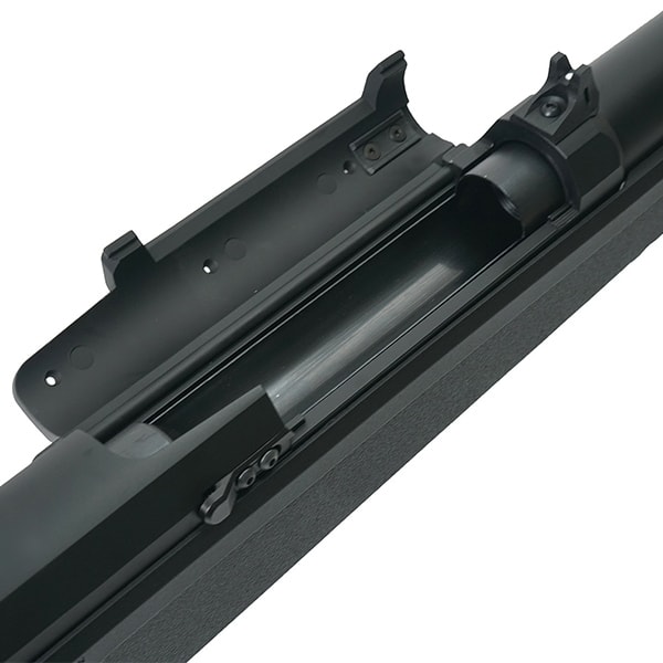 全体の構成としては、20mmレールやM-LOK、KeyModなどマウントシステムが存在せず、軽量さを重視し、余分なものが省かれた最小限の構成に抑えらており、QDスイベルソケット、バイポッドピポット、シンプルなオープンサイトが備わりクラシックかつミニマルなデザインとなっています。