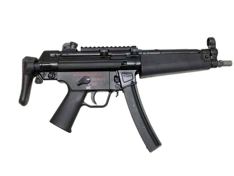 ドイツのヘッケラー&コッホ社が設計した短機関銃。G3自動小銃を元に9x19mmパラベラム弾仕様に縮小した設計で、命中精度の高さに定評がある。第2次世界大戦後に設計された短機関銃としては最も成功した製品の一つ。1966年に西ドイツの連邦国境警備隊に制式採用されたのに始まり、現在では対テロ作戦部隊などでは標準的な装備となっている。MP5A5は第二期改良型のうち伸縮式ストック装備のものになる。