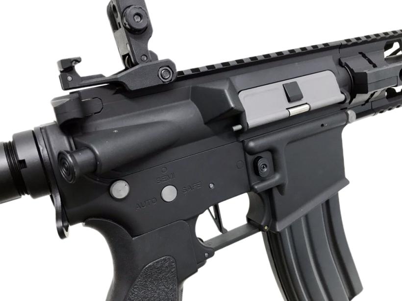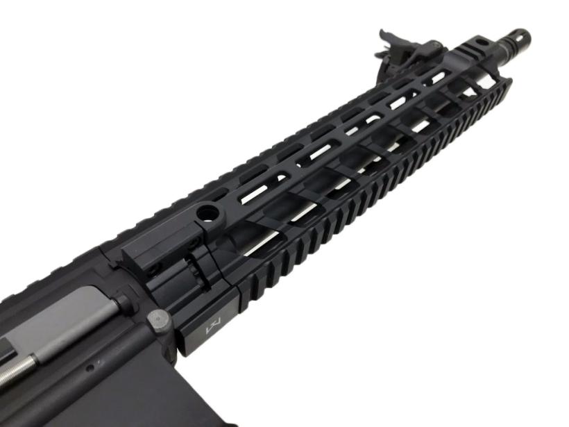 ハンドガード上下と左右先端部はスタンダードなレイルシステムとM-LOKを備え、誰もが扱い慣れたフォルムに十分な拡張性を備えています。