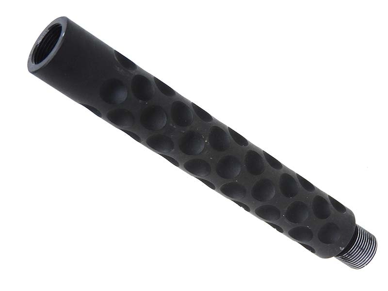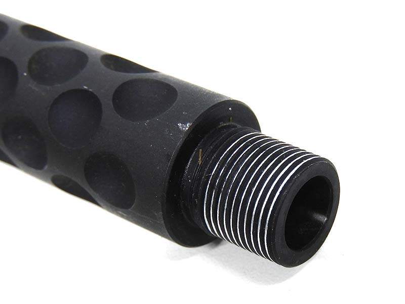 M14逆ネジ仕様のアウターバレルに取り付ける事で、ます。延長バレル先端のハイダー用ネジはM14逆ネジです。ナイツタイプディンプル仕様。