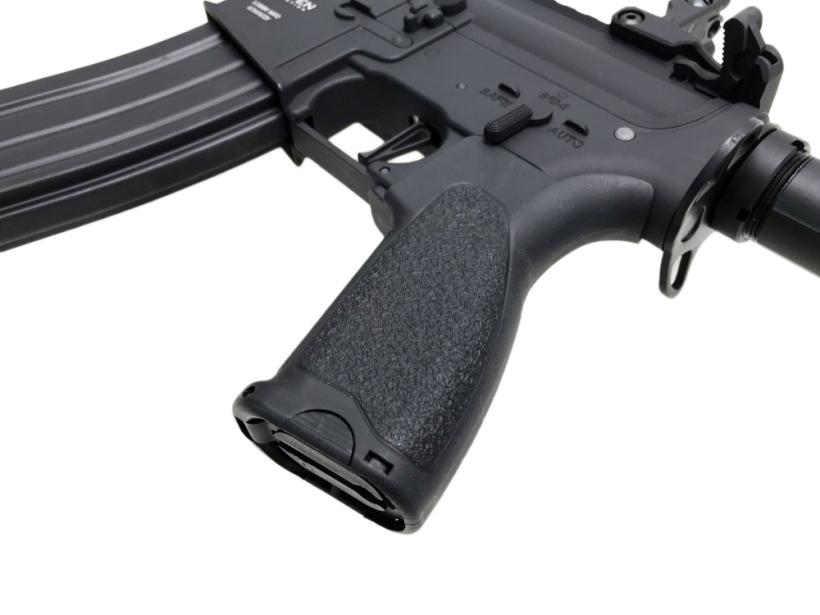 ハンドガード上下と先端部側面には20mmレイルシステムを備え、誰もが扱い慣れたフォルムに十分な拡張性を備えています。