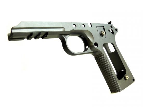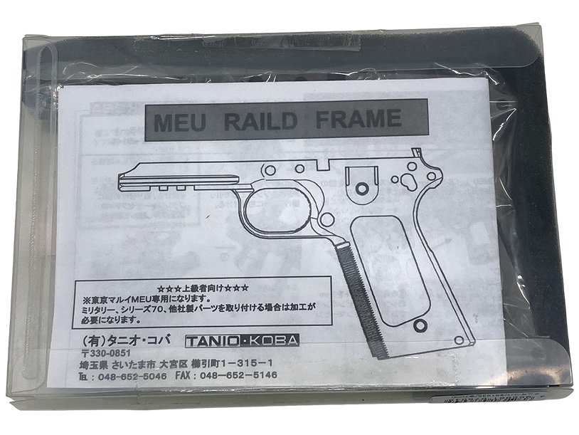 タニオコバよりマルイ MEU用レイルドフレームが登場!!ヘビーウェイト樹脂素材を使用し、タニオコバならではの一体型レイルで強度、耐久性が格段にアップ。表面処理がブラスト処理のみのため、自身で塗装や黒染めが行えるようになっています。チェッカータイプグリップ。分解/組立説明書付属。