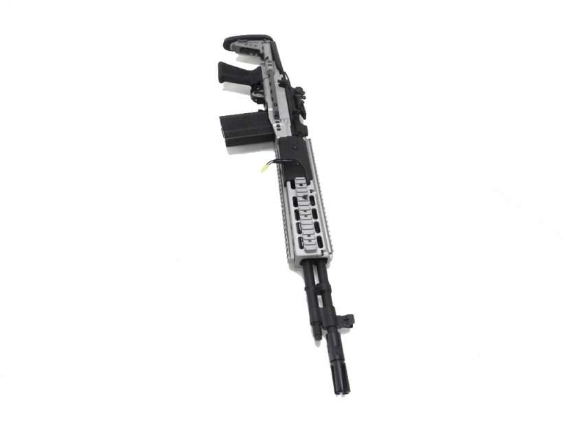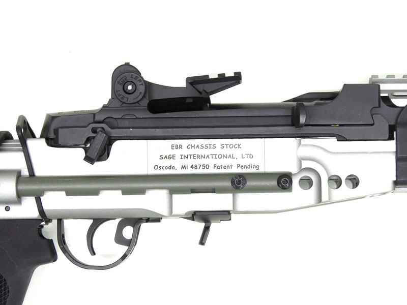 M14 EBRはアメリカのsage internationalというアクセサリーメーカーが製作したシャシー(シャーシ)システムにM14の機関部を組み合わせた銃で、EBRという名称はEnhanced Battle Rifleを略したもの。M14の威力と精度の高さをそのままに、伸縮可能なストックや、各種光学機器を搭載するためのレールマウントを追加することで、最新の戦術に対応出来るだけの拡張性をもたらしている。