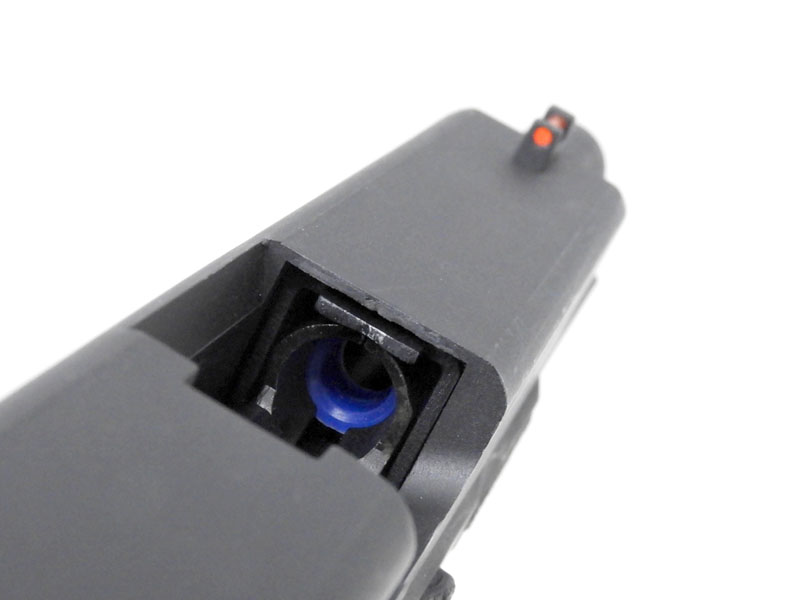HOPチャンバーパッキンとインナーバレルを社外パーツに変えることでパワーアップを図り、スライドをより黒みがかった色合いに再塗装したショップカスタム品です。