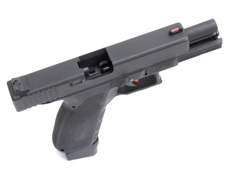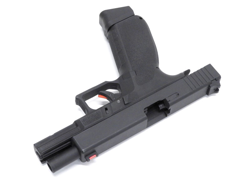 ハンドガンの場合は全体を金属性とする組み換え、エアソフトガンの場合は射出エネルギー0.98J以上にする改造を行うと銃刀法違反となります。HFC134a仕様のガスガンにCO2用マガジンを組み込む、スライドを金属製の物に差し替える等、簡易な改造でも罪に問われる可能性がございますので、絶対にお止めください。