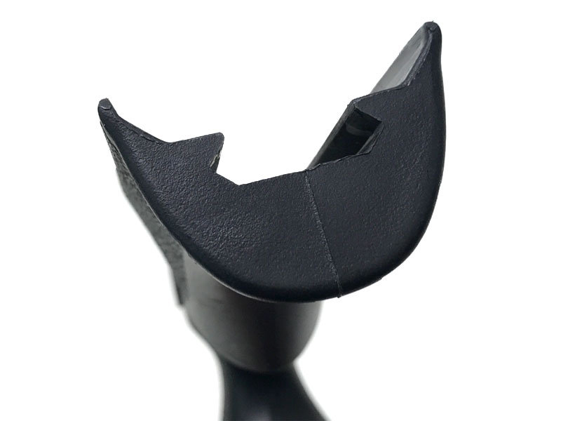 前半部分は、AFG(アングル フォアグリップ)に似た形状で、ハンドガード全体をしっかりと握り込むことを前提に設計されている。手のひら全体でグリップを支えることにより、射撃時の安定性と動きやすさを両立させ、長時間の使用でも疲れにくく快適さを提供する。指や手首への負担も軽減され、どんな状況でも優れた操作性を実現している。