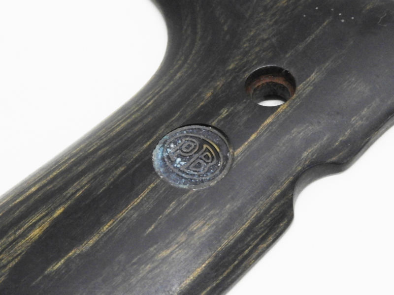 ベレッタ/PB刻印のメダルが入った木製グリップパネルです。