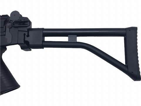 SA58カービンRISはその名の通りカービンタイプにRISハンドガードを装備した現代的モデル。 SA58 のショートモデル。折りたたみ式スケルトンストック。バッテリーケース付モデルです。