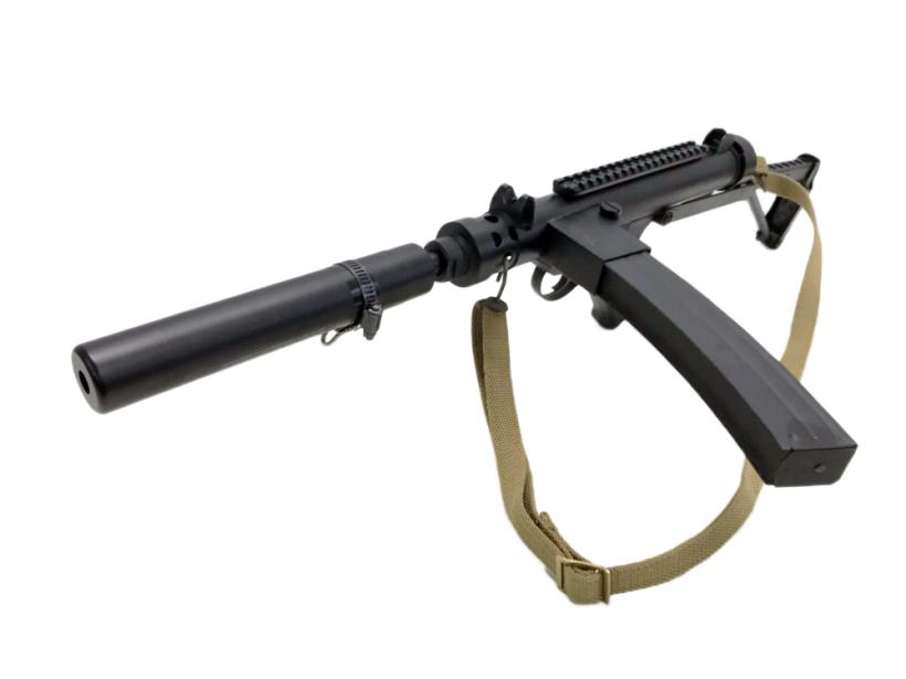 スターリングの短銃身モデルをベースに、専用ストックの装着とストックの折り畳みに対応した改造を施したサイレンサーを装着したカスタム品。