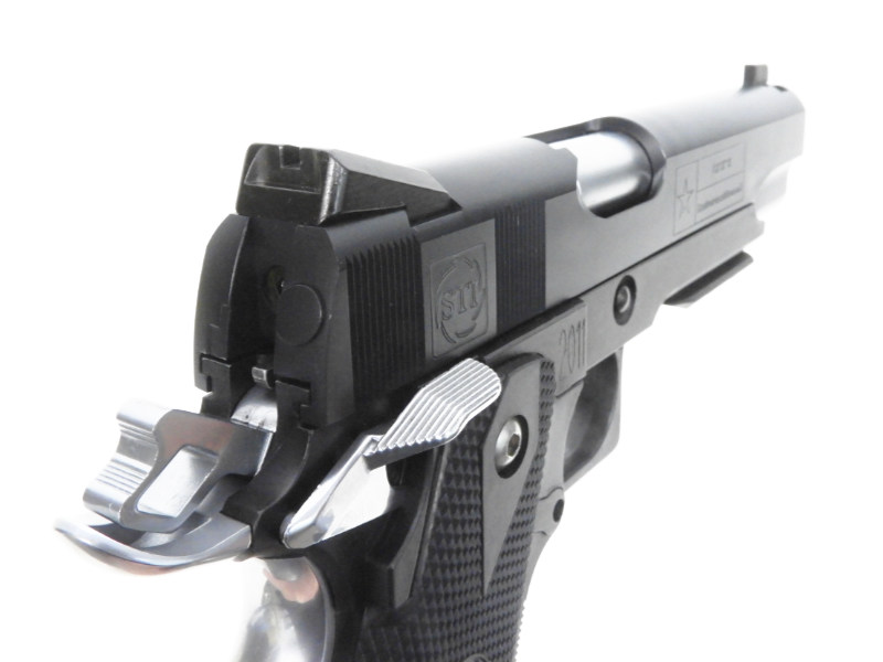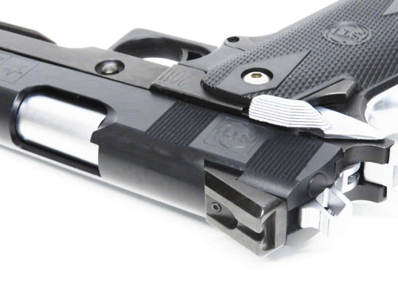 ハンマーもSTI SQUAREタイプハンマーに換装し、アンビサムセーフティを装備したカスタム品です。よりSTIらしいフォルムへと昇華しています。