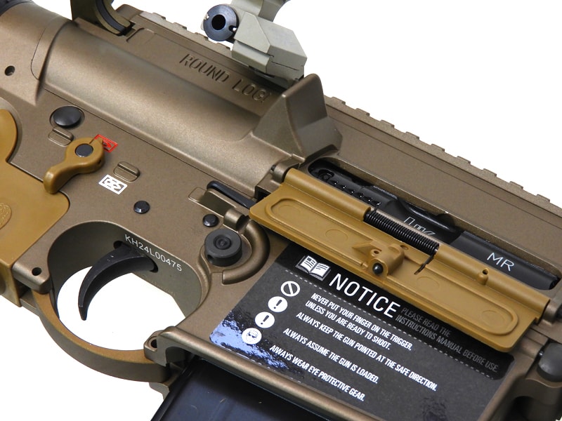 発射後のBB弾や排出されたカートは跳ね返る事があるので、必ず充分な強度のあるゴーグルを着用してください。