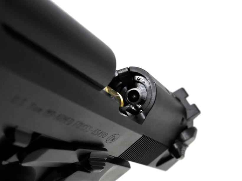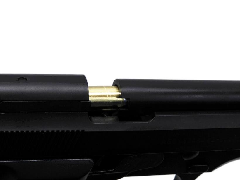 装弾数が15発と豊富で操作性も高く、ベレッタ製自動拳銃の特徴である上部が大きく切り欠かれたスライドは、軽量で射撃時の反動が比較的少ないうえ、排莢口が大きくなるため排莢不良も起こり難い。