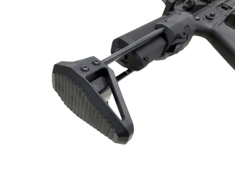 「TRIDENT PDW-M」はベリーショートサイズのフロント周りとコンパクトなリトラクタブルストックを組み合わせたPesonal Defense Weapon(個人防衛用火器タイプ)で、CQBやインドア戦における取り回しに優れたコンパクトなデザインが最大の特徴。
