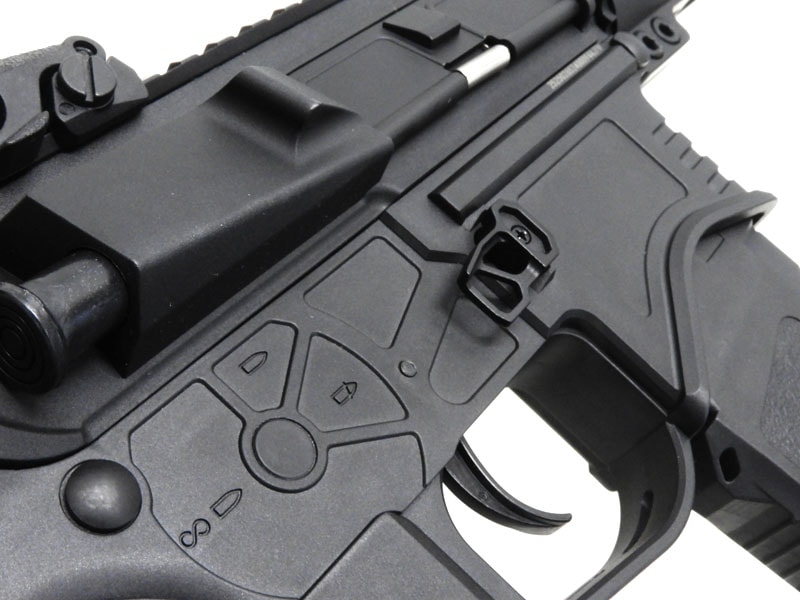 実銃風デザインに独自アレンジを加えた外装と、最新型電子トリガーEshooter Kestrel V2 BASICを標準搭載した電動ガン。外装の細部にこだわりつつ、電子トリガーで高い実射性能を実現している。