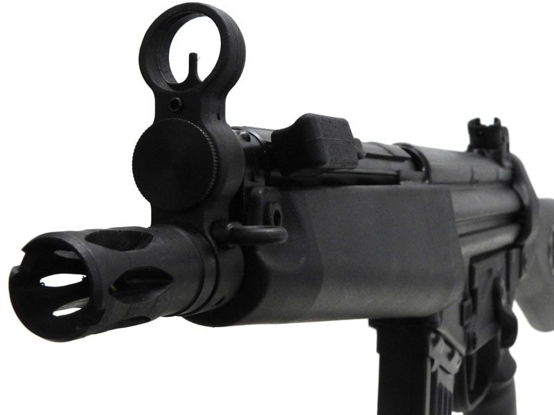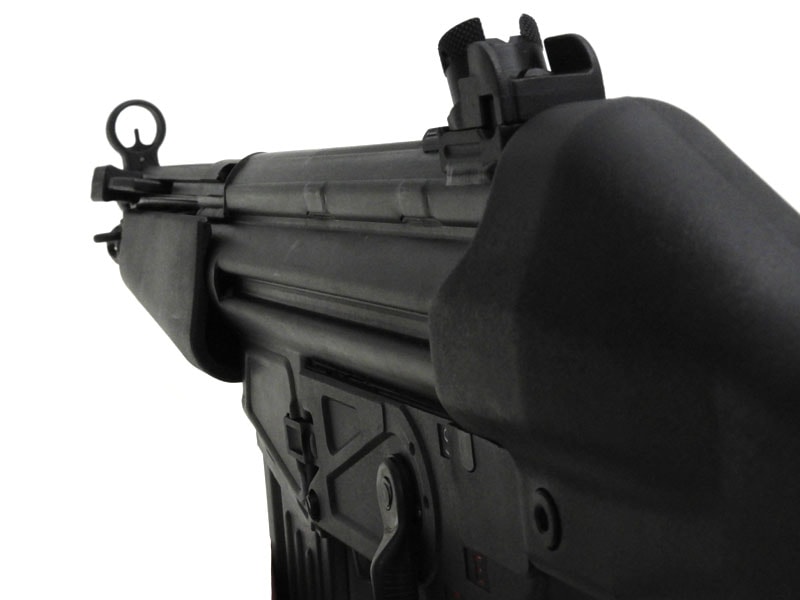 HK53はHK33KやMP5同様の固定/伸縮ストックを使用し、短縮化されたバレルとMP5シリーズに類似したポリマー製フォアアームを採用。 重量も軽量化され取り回しが向上しています。