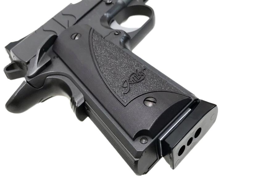 ハンドガンの場合は全体を金属性とする組み換え、エアソフトガンの場合は射出エネルギー0.98J以上にする改造を行うと銃刀法違反となります。HFC134a仕様のガスガンにCO2用マガジンを組み込む、スライドを金属製の物に差し替える等、簡易な改造でも罪に問われる可能性がございますので、絶対にお止めください。