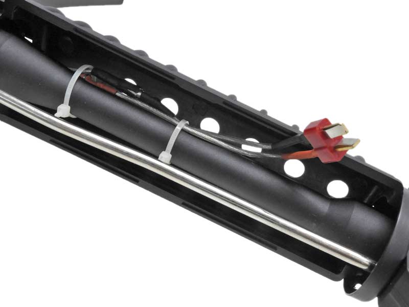 ※バッテリー接続時にはセレクターを「フルオート」にし、BB弾が装填されていない事を確認した上でトリガーに触れずに、周囲の安全を確認し接続してください。