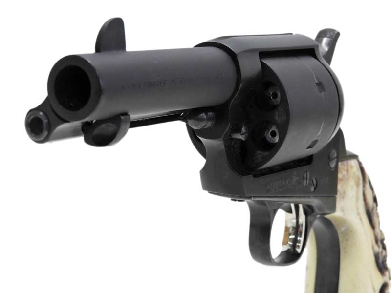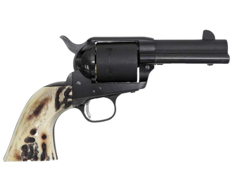 バレルが約3.5インチにカットされ、シリンダーとグリップは交換されています。グリップはスタッグホーンタイプに交換されています。