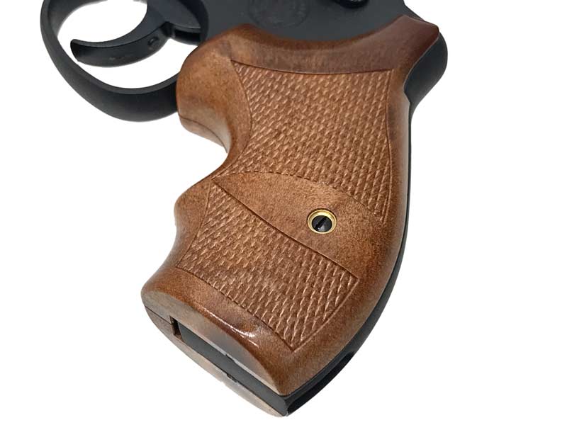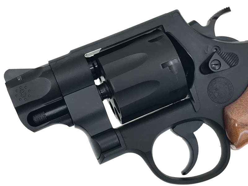 実銃はチタニウムのシリンダーとバレルシュラウド、スカンジウムアロイ製フレームを持ち、新素材を用いつつスナブノーズ化するなど、徹底的に軽量化・小型化したモデル。