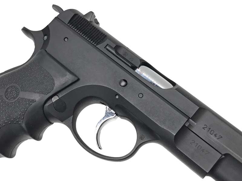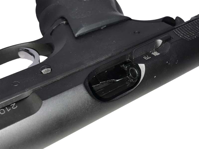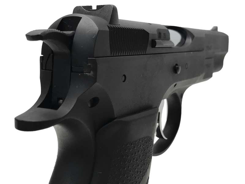 スライドをフレームが包みこむ形状は、実銃でも例の少ないデザイン。東欧の工業国チェコの技術者気質すら漂う機能美を、豊富なデーターから完全再現。