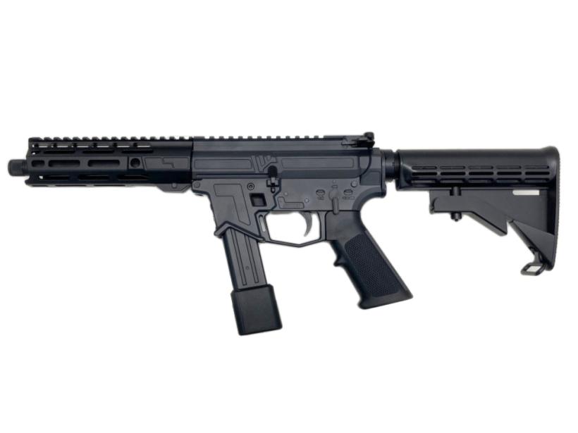 本製品は、AR15ベースの拳銃口径カービンライフルをモチーフに、スタイリッシュなデザインのアルミレシーバーと、取り回しに優れた7.5インチバレルを備え、Hi-Capa系に準拠したガスマガジンを使用して作動するSAVIAオリジナルデザインのガスブローバックモデルとなります。
