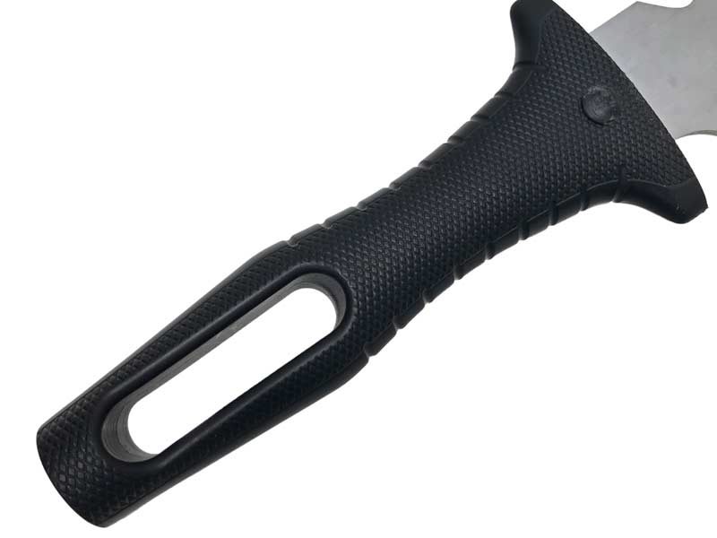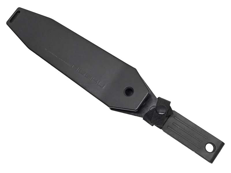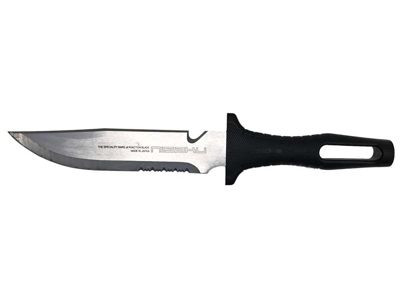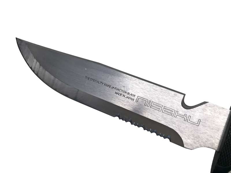 仁作 陸刀 キャンプや登山に持って行きたいナイフ!握り手は縦方向だけでなく横方向にも力の入れやすいグリップ形状が機能的な刃部をより使いやすく手にフィットする硬質エラストマー樹脂。刃部は総焼入れ刀身、鉈のように使える頑強な3mm厚刀身。また国内で数社しかできない波刃。ガットフックがロープやツタなどを切断します。鞘はシンプルなホールド機能をもった樹脂製。携帯時にはベルトに通すことで装着可能です。