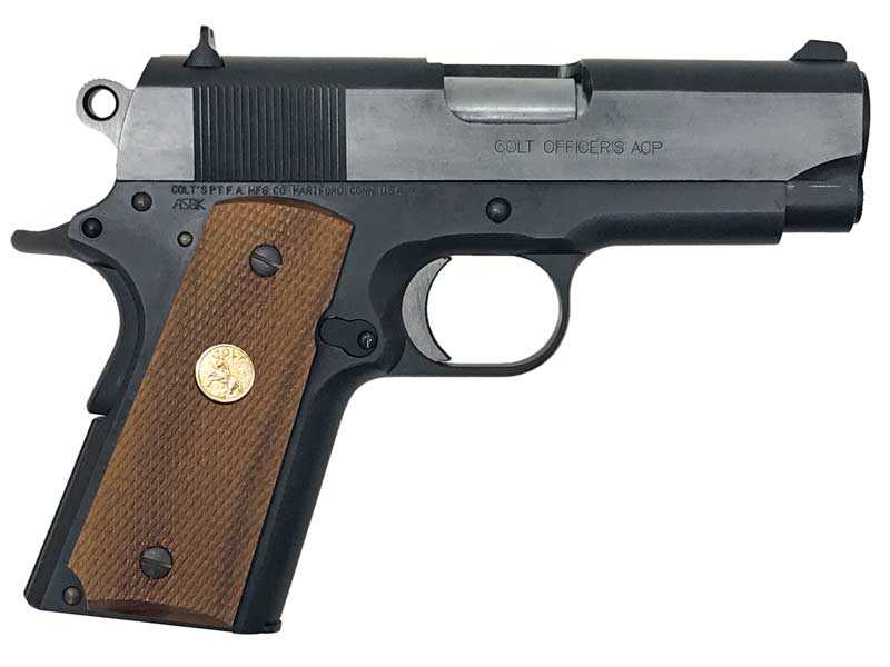 .45口径というパワフルな弾丸を使用しながら、コンパクトで愛嬌のあるスタイルで高い人気を獲得している「オフィサーズACP」。カーボンブラックの限定カラー。