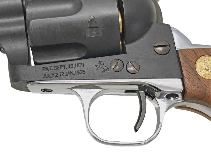 1873年に開発されたコルト社製シングルアクション式回転式拳銃。保安官が愛用していたことから、「ピースメーカー(Peace Maker)」という愛称で呼ばれることが多い。 1872年末にブラックパウダーモデルが完成し、陸軍用の7-1/2インチモデルが最初の生産となる。1896年からは、フレームを強化・無煙火薬を使用するスモークレスモデルが登場。1892年にダブルアクション式の「ダブルアクションアーミー」に替わるまで、20年もの間アメリカ陸軍の制式拳銃(制式名「M1873」)として活躍。西部劇ファンに親しまれ、今なお生産が続けられている。生産時期では、1st.、2nd.、3rd.、4th.の年代に区別されている。口径は.22口径〜.455口径まで36種類もある。