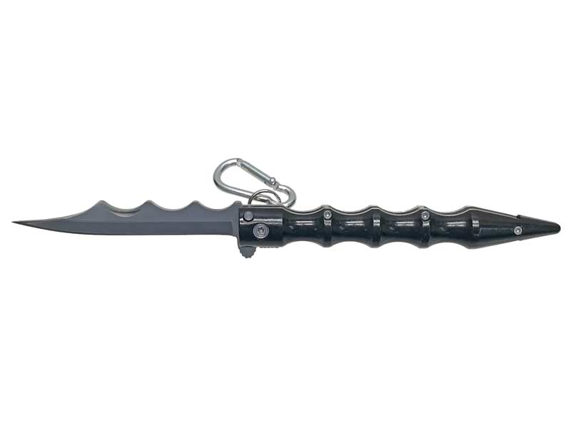 クボタン型 フォールディングナイフ クボタン型のフォールディングナイフ。クボタンとしても、ナイフとしても使えます。フルメタルで剛性抜群。携帯に便利なカラビナ付き。