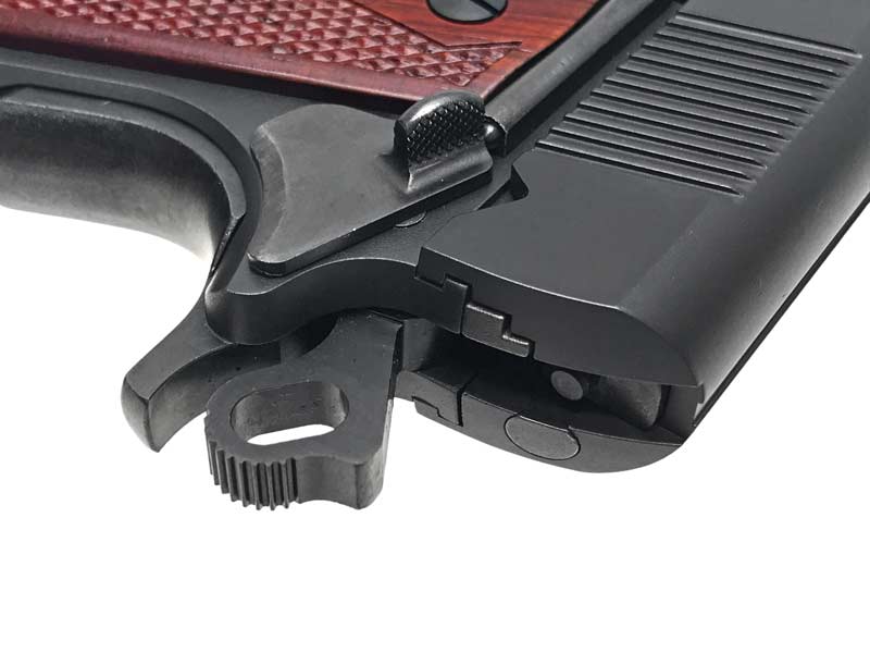 ハンドガンの場合は全体を金属性とする組み換え、エアソフトガンの場合は射出エネルギー0.98J以上にする改造を行うと銃刀法違反となります。HFC134a仕様のガスガンにCO2用マガジンを組み込む、スライドを金属製の物に差し替える等、簡易な改造でも罪に問われる可能性がございますので、絶対にお止めください。