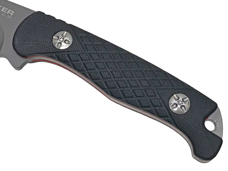 やや厚めのホローグラインドながら、包丁のようなシルエットを持ち、カイデックス製のシースも付属しているため、アウトドア用の包丁としても使いやすい一本です。