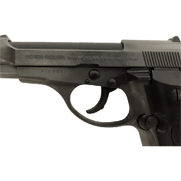ベレッタ社が1976年に開発した中型自動拳銃。同社M81より連なる“チーター”シリーズのひとつであり、M81の.32ACP弾より強力な.380ACP弾を13発装填できる。ダブルカラムのため携帯するには少々大きめだが、癖が無いため初心者や公的機関の制服組などによく使用されている。現在は、トリガーガード及びセイフティの形状が異なるM84F、セイフティがデコッキングレバーも兼ねているM84FSが主流。他にも単列弾倉で携帯性を重視したM85、M85のバレルをチップアップにしたM86(現在は生産終了)、.22口径のM87、22口径スポーターモデルのM89などがあり、M85の改良型であるM85Fは日本の厚生労働省・麻薬取締部の捜査官が護身用に携帯している。