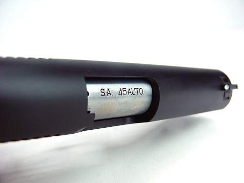 1911においてはプロフェッショナル向けとして位置づけられるコマンダーサイズ、SFAにおいてはチャンピオンがそれにあたり、その中でもライトレールを装備したタクティカルなモデルがこのチャンピオンオペレーター。フィクスドコンバットサイト、アンビセフティ、デルタハンマー、コーンバレル、ロングリコイルSPガイドなどなど、タクティカル.45の定番要素はすべて詰まっており、頼もしい説得力がある。特に見どころといえるのはリコイルSPガイドの形状で、この「チャンピオン」モデルのみに採用された専用ロッドの存在感が非常に印象強く、ホールドオープンの姿がとても味わい深い。ある意味オーソドックスなパーツ選定で見慣れた感もあるが、細かい部分の違いの分かる玄人に受けるモデルといえるだろう。
