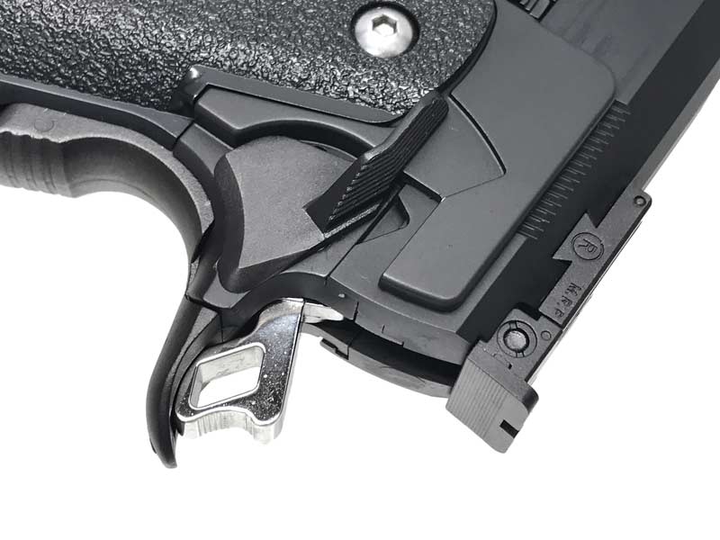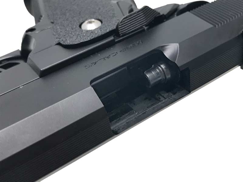 スライドには重量弾「.45ACPミリタリーボール+P」への対応を想定した角型ヘヴィタイプを採用。また、ピカティニー規格(20mm幅)のアンダーレイルが付属し、各種フラッシュライトを装着可能なタクティカルスタイルと、レイルレスのスポーツスタイルを選択可能なオールマイティモデルとなっている。