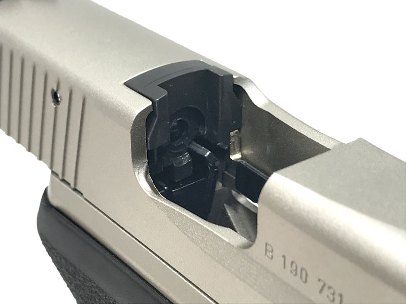 キレのある軽快なブローバックはそのままに、ヘビーウエイト樹脂仕様の重量感の向上だけでなく、Evolution 2での改良点も継承しており、リコイルガイドにはスライドへの衝撃を緩和するバッファーシステムを組み込み、フレーム側では、起きたハンマーの衝撃をエラストマー製のハンマーストップが吸収。