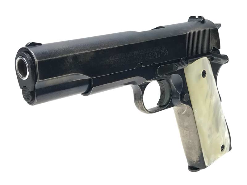 ジョン・ブローニングの設計による自動拳銃。1911年から70年以上に渡ってアメリカ軍の主力拳銃として活躍。この銃に用いられた設計は、現代に至るまで多くの拳銃でも採り入れられている