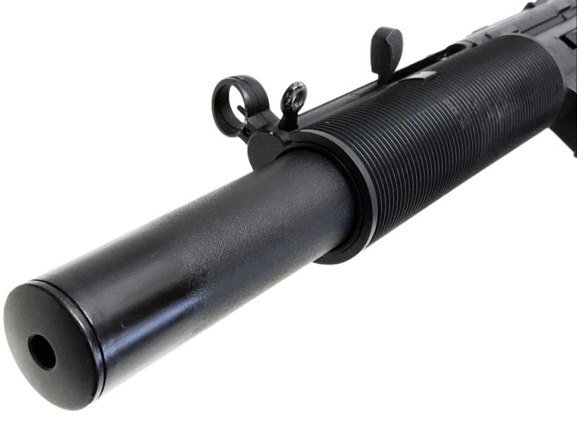 大型のサイレンサーはネジ式になっており取り外すことが可能である。伸縮ストックはなかなか使い勝手がよくガタつきもないのでしっかりしている。