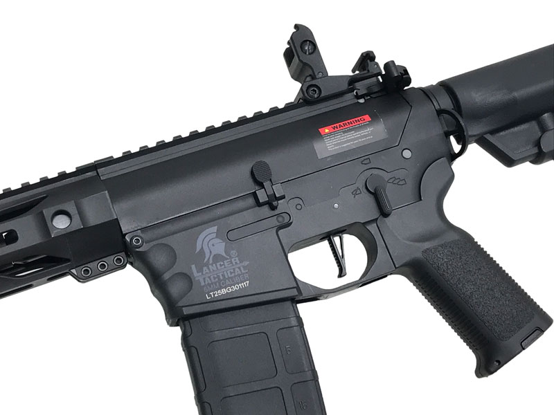 Lancer Tactical Gen3 Interceptor SPR Lancer Tactical Gen3 Interceptor SPRは、ZION ARMS電子トリガーを内蔵した最新ポリマー電動ガンである。金属製Ver.2ギアボックス、18:1スチールギア、スチールピストン、19000RPMハイトルクモーターを搭載し、軽量ながら耐久性に優れたAEG構造を実現。インナーバレルは6.03mmで精度を確保し、369mmバレルが安定した弾道を生む。全長789〜872mm、重量約2260gで取り回しやすく、バーストモードの切替により多様な戦術に対応可能。2024年11月入荷分よりデルタストックへ仕様変更済み。