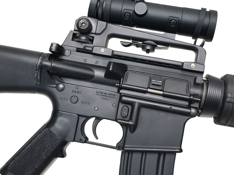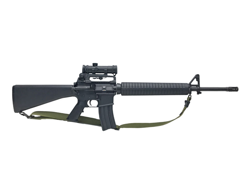 カスタム品 Colt M16A4 を再現したフルカスタム品。ナイロンハンドガード、キャリングハンドルに専用スコープなど、見事な再現度と確かな剛性を実現。