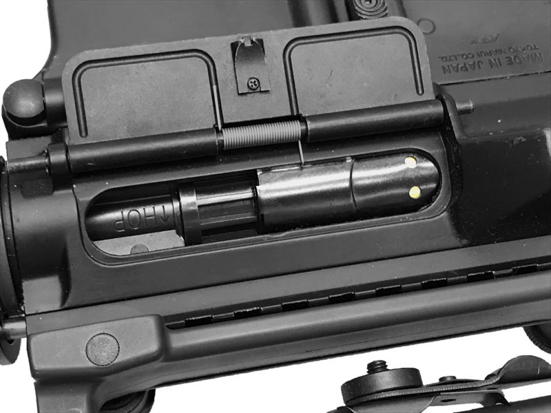 発射後のBB弾や排出されたカートは跳ね返る事があるので、必ず充分な強度のあるゴーグルを着用してください。