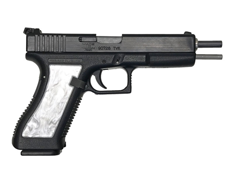 カスタム品 フレームにパール調のグリップパネルが取り付けられ、インナーバレルとリコイルスプリングガイドが延長されたカスタム品です。※要画像参照