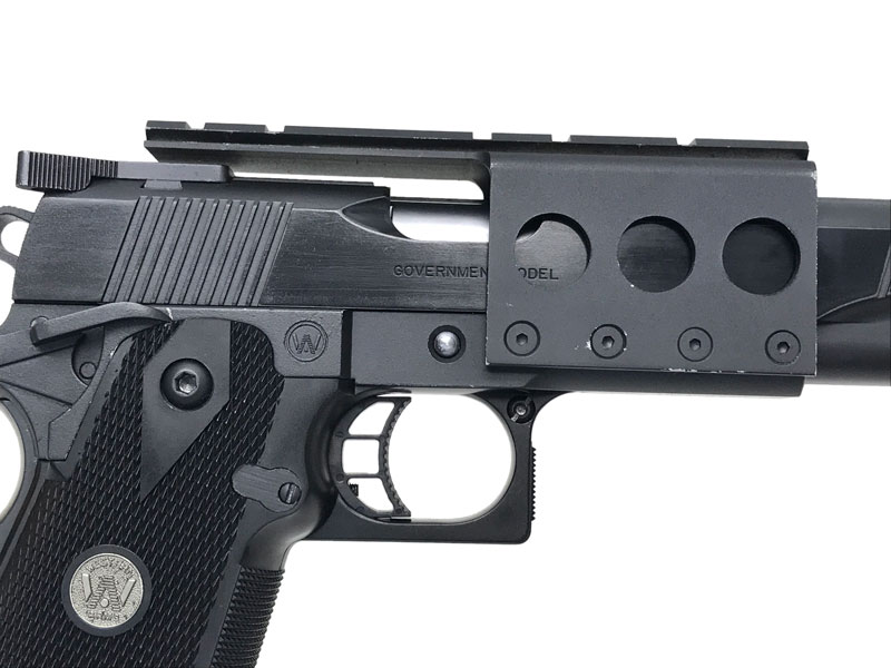 WA 【HI-CAPASITY .45 OPTICAL MATCH SPL.】 シルバーカラーのレールマウントとコンペンセイターを備えたレースガンスタイルが際立つ限定モデル