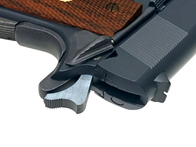 「M1911」の改良型が「M1911A1」である。チェッカー付きのショートトリガー、トリガー付け根のリーフカット、ハンマーバイド対策のロンググリップセーフティやラウンドのチェッカーのメインスプリングハウジングなどが改善点とされている。